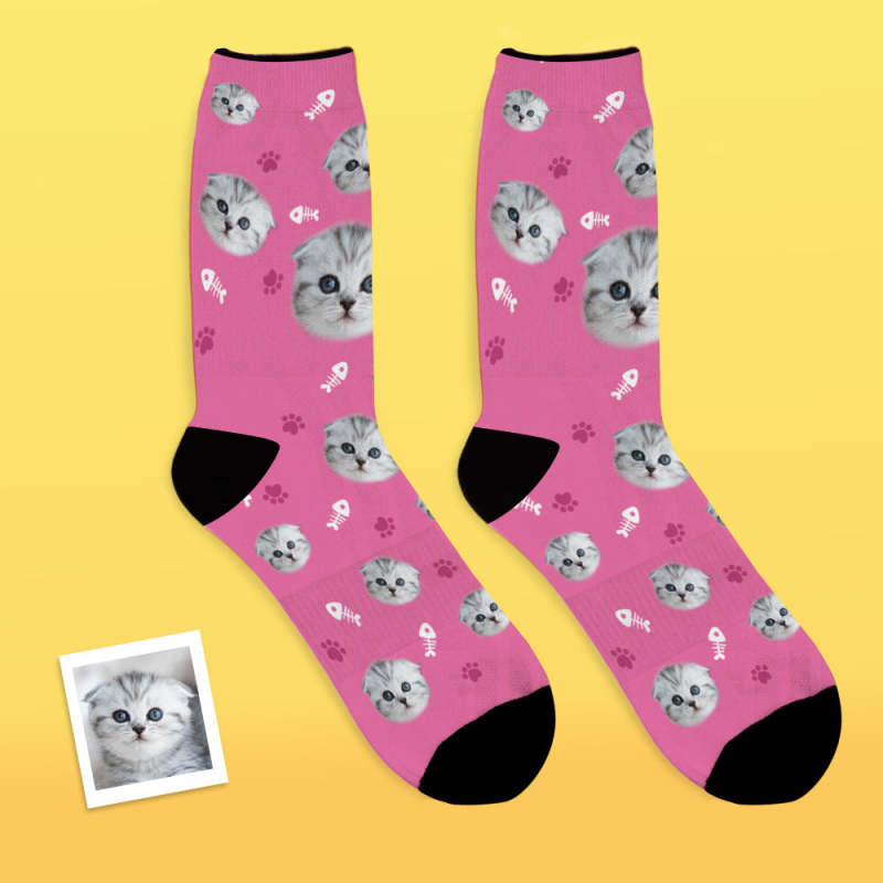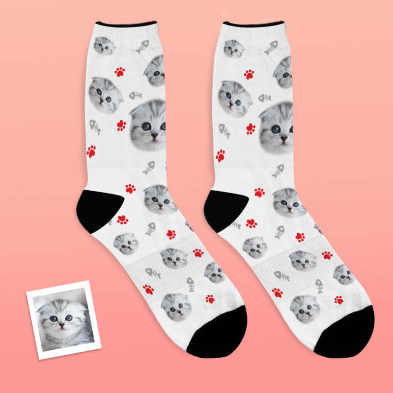 Custom Face Socks Breathable Photo Socks Colorful Cat Socks