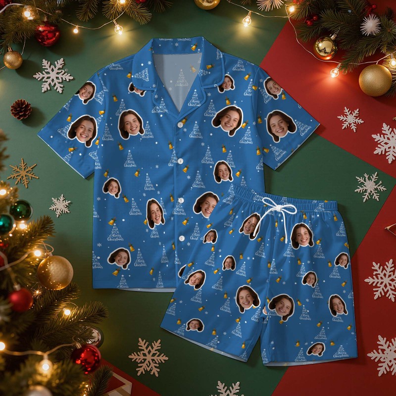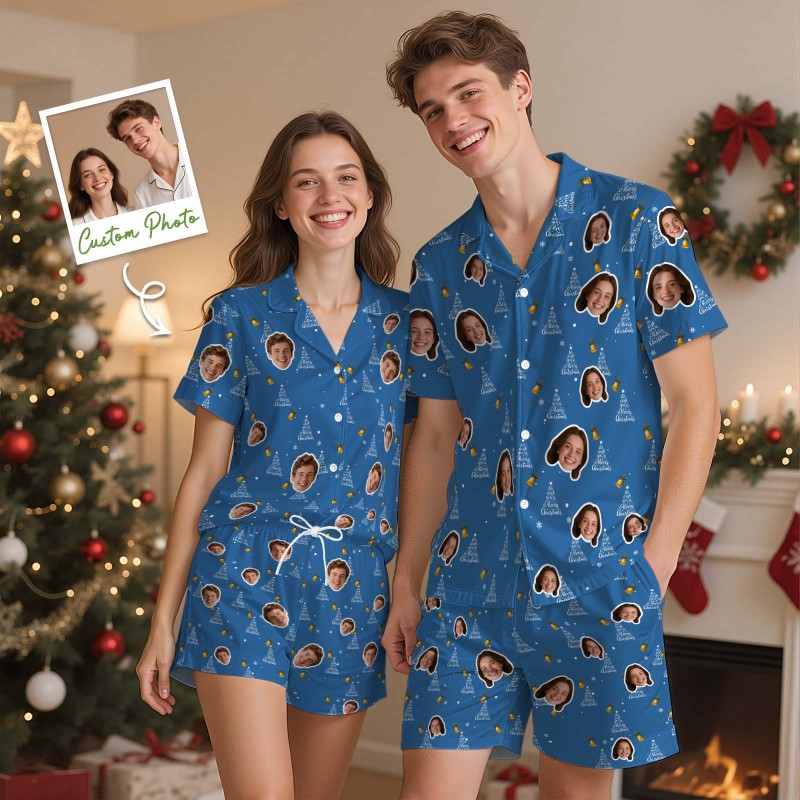 Christmas Gifts Custom Face Short Sleeved Pajamas Xmas Lights Personalised Sleepwear Love Gifts For Her