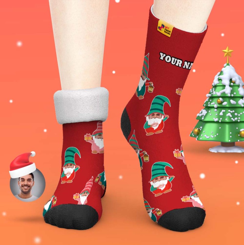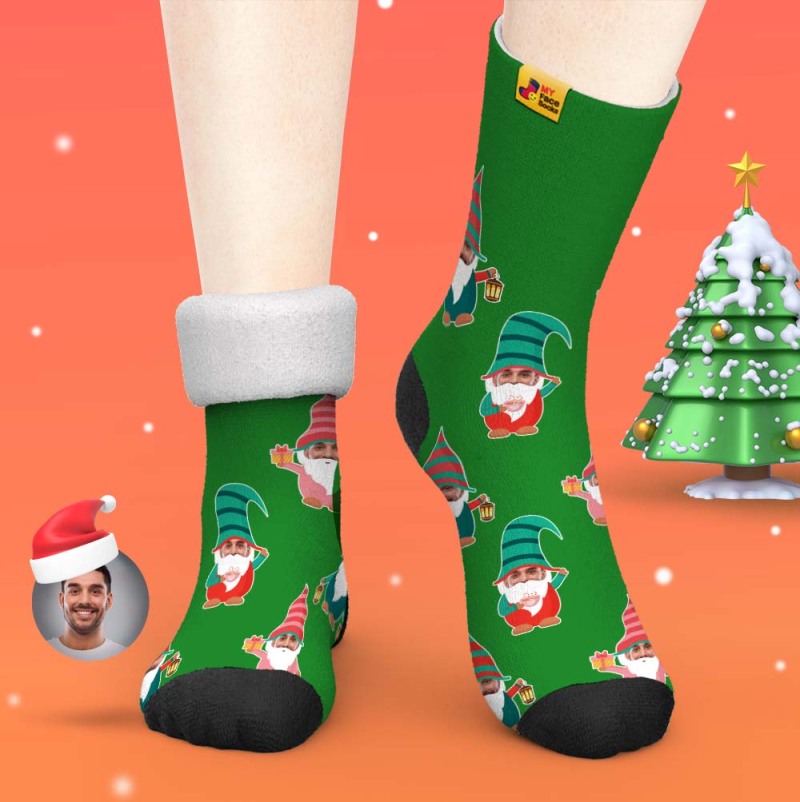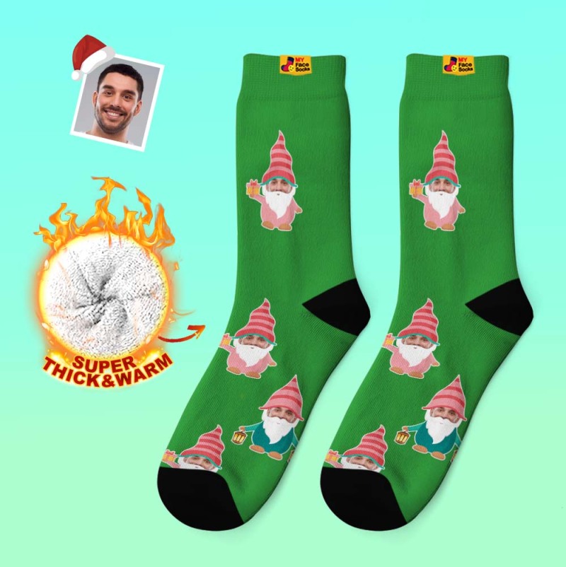 Christmas Gifts,Custom Thick Socks Photo 3D Digital Printed Socks Autumn Winter Warm Socks Gnome Socks