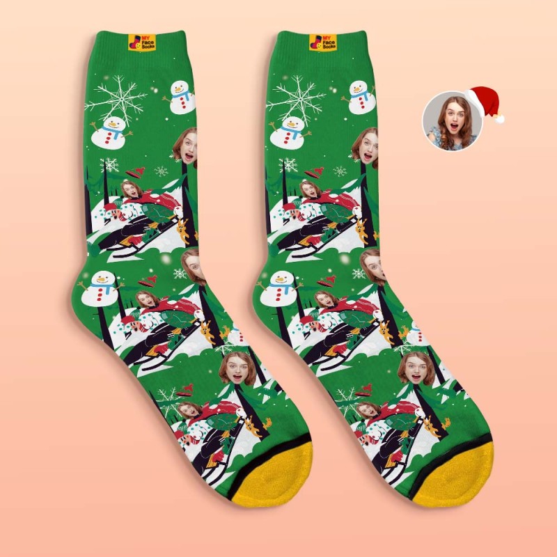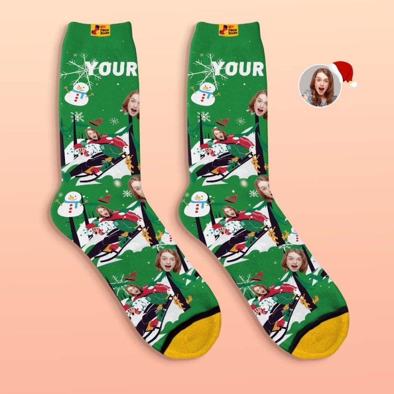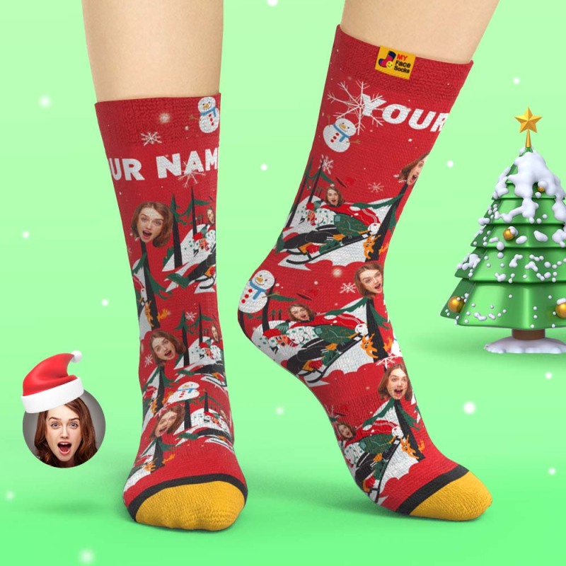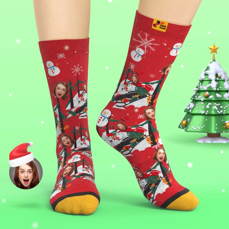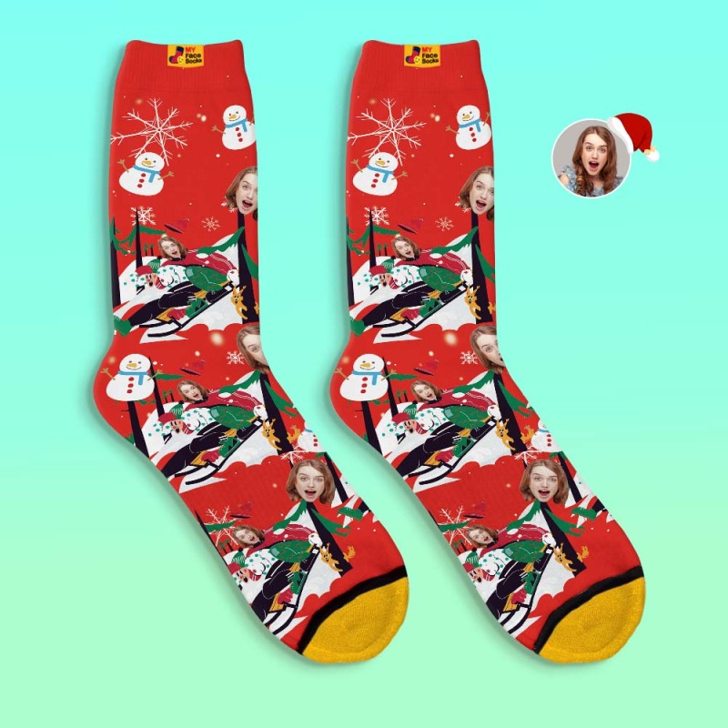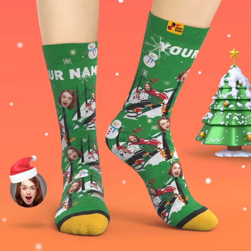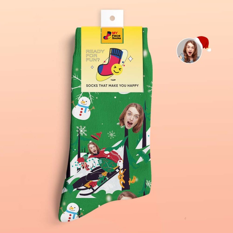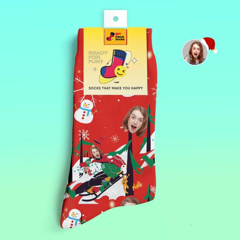 Custom 3D Digital Printed Socks Christmas Gift Socks Sledding Together