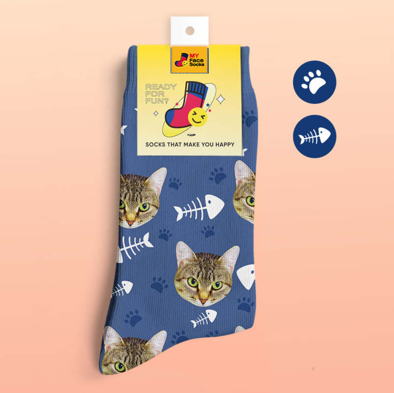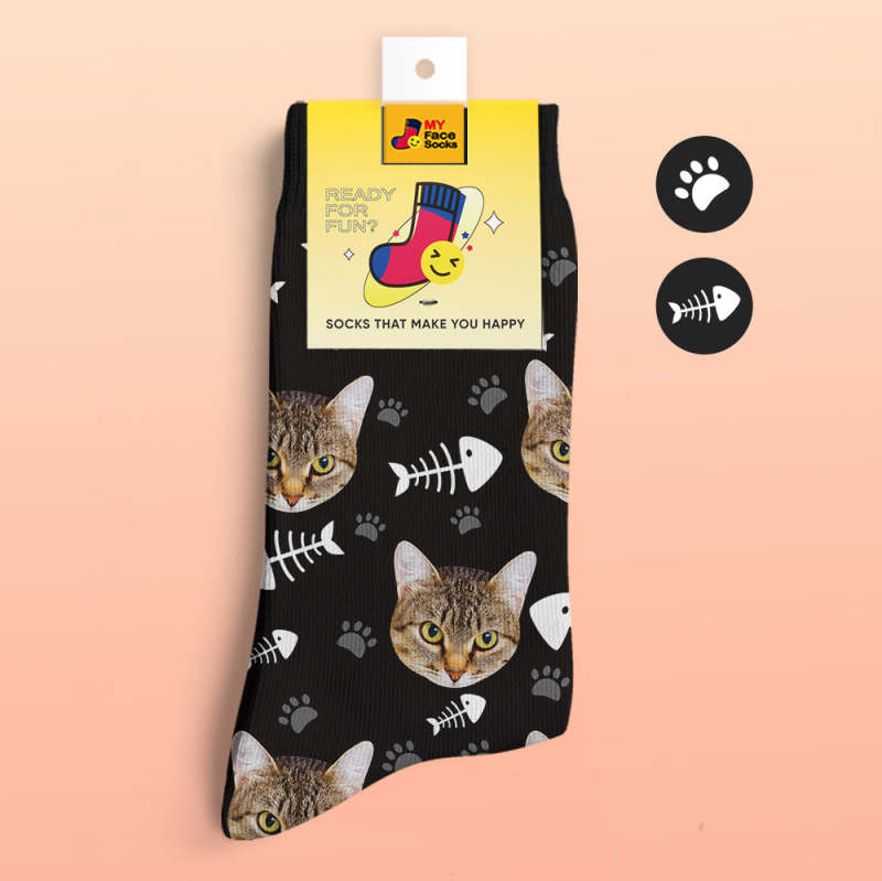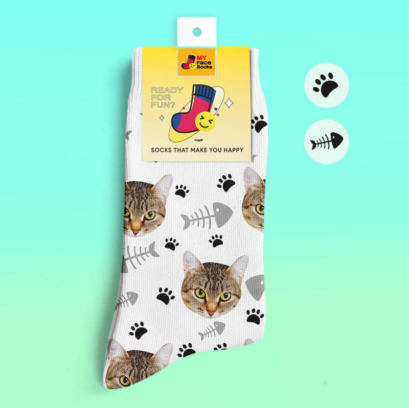 Custom 3D Digital Printed Socks My Face Socks Add Pictures and Name - Cat