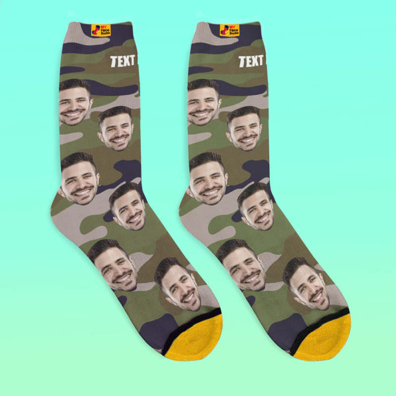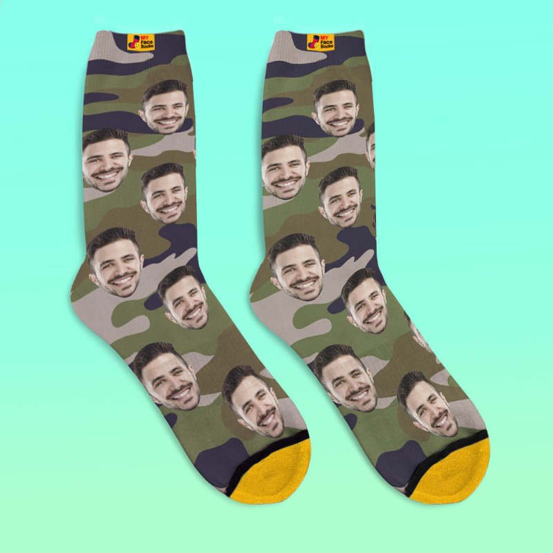 Custom 3D Digital Printed Socks My Face Socks Add Pictures and Name - Green Camo