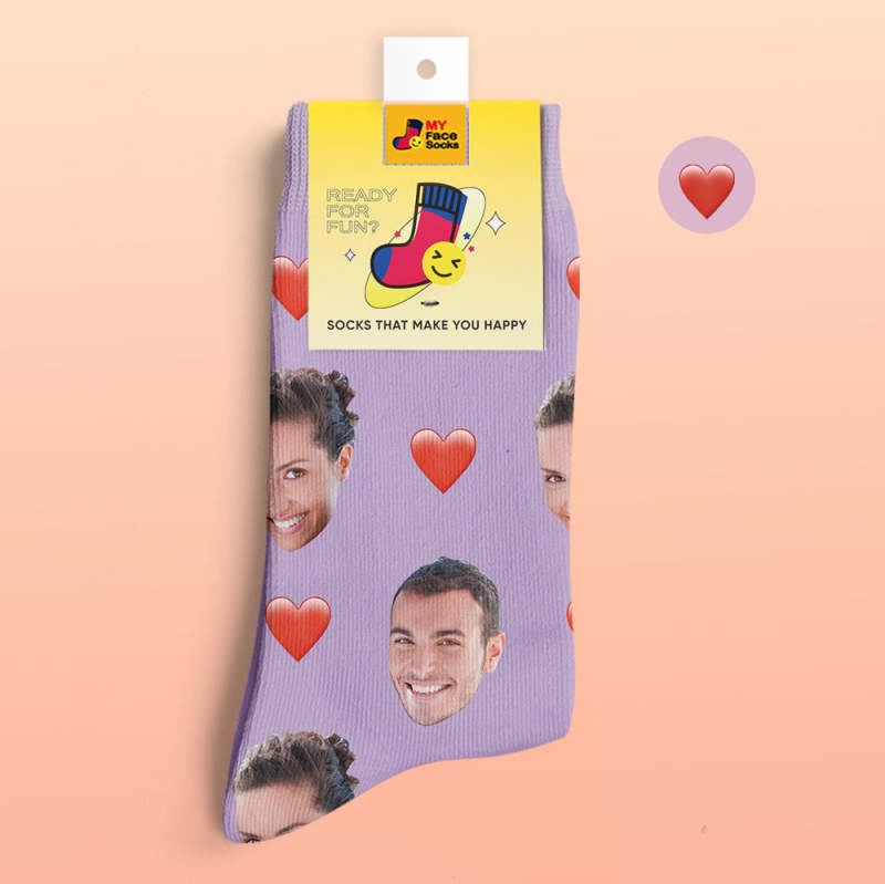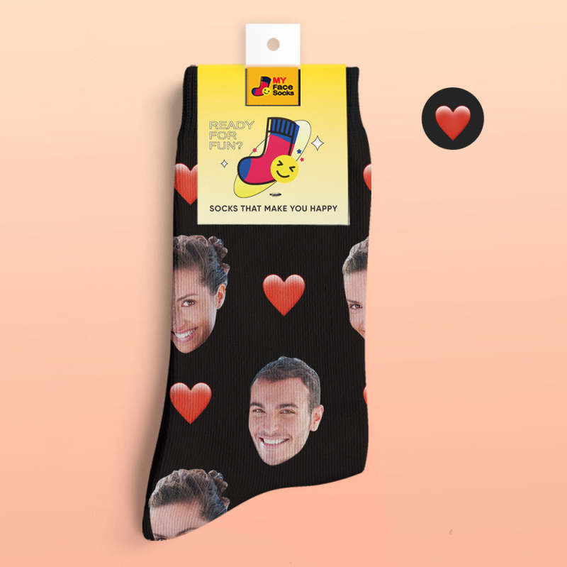 Custom 3D Digital Printed Socks My Face Socks Add Pictures and Name - Heart