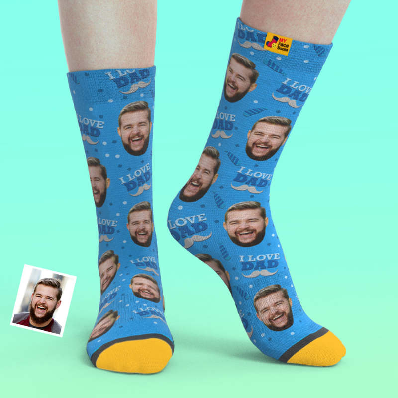 Custom 3D Preview Socks My Face Socks Add Pictures and Name - I Love Dad