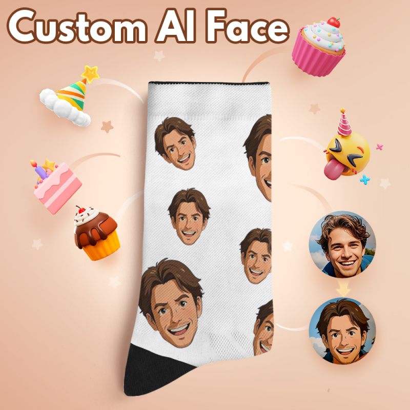 Custom AI Effect Face Photo Print Socks Colorful Happy Fathers Day Personalized Custom Design Best Gift Idea Funny Face