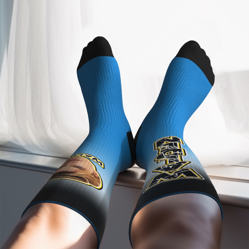 Custom Athletic Knee High Socks Gradient Blue And Yellow High Socks Personalized Compression Socks Face and Text Knee High Socks
