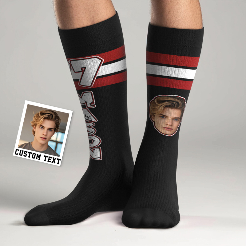 Custom Athletic Knee High Socks Personalized Compression Socks Face and Text Knee High Socks