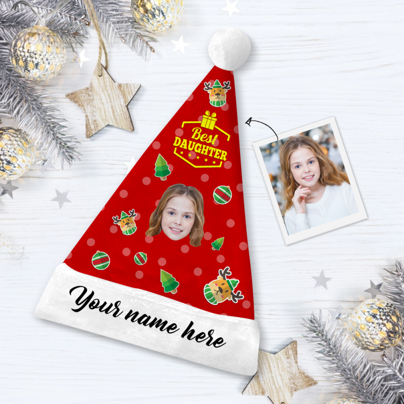 Custom Best Daughter Face Santa Hat With Your Text