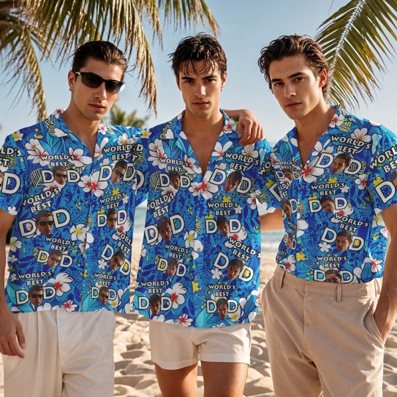 Custom Best World Dad Face Hawaiian Shirt Blue and Flower Tropical Hawaiian Shirt Fathers Day Gift
