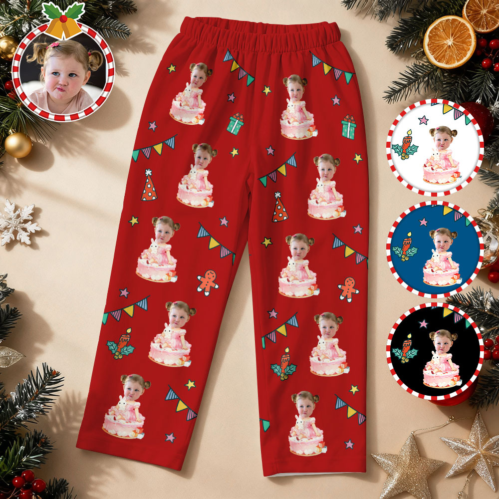 Custom Birthday Face Long Sleeve Pajamas with Baby Face Personalized Photo Pajamas Gift Christmas