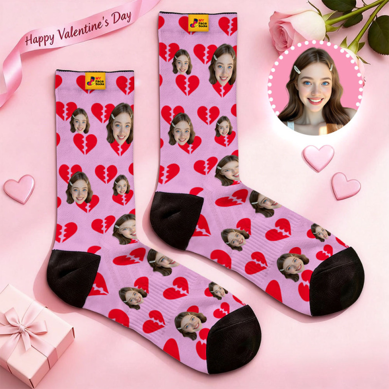 Custom Black Heart Face Socks Personalized Valentine Day Socks with Photo Cute Heart Pattern Couple Gift