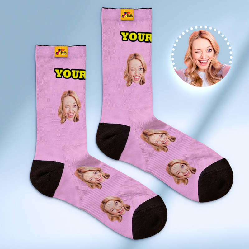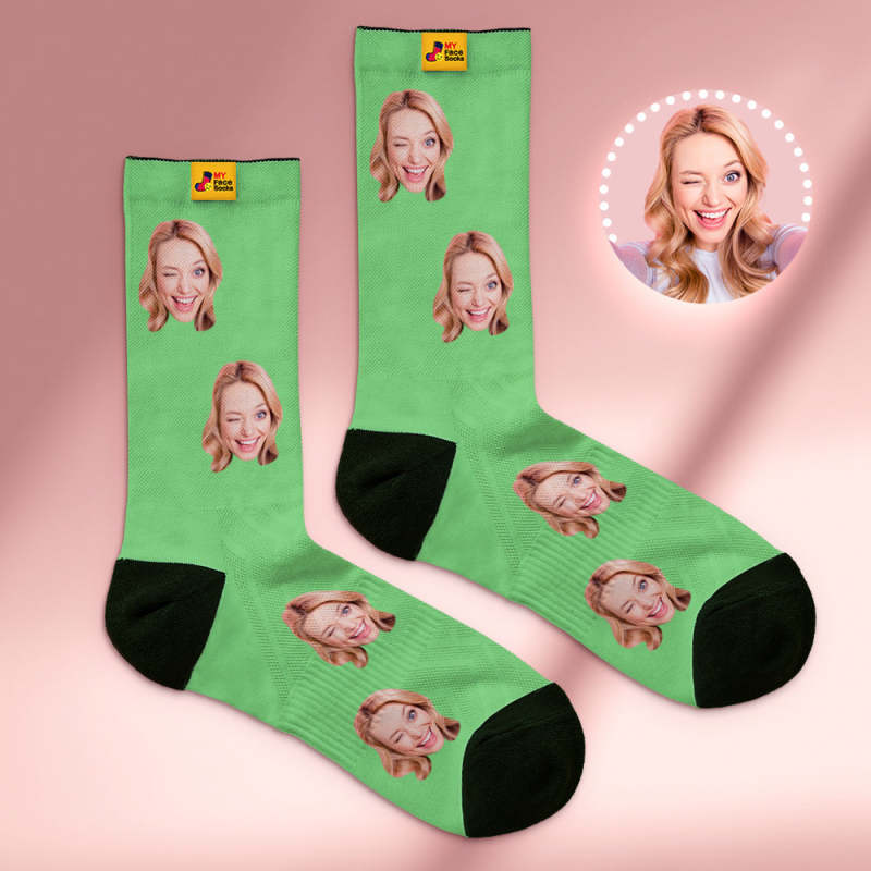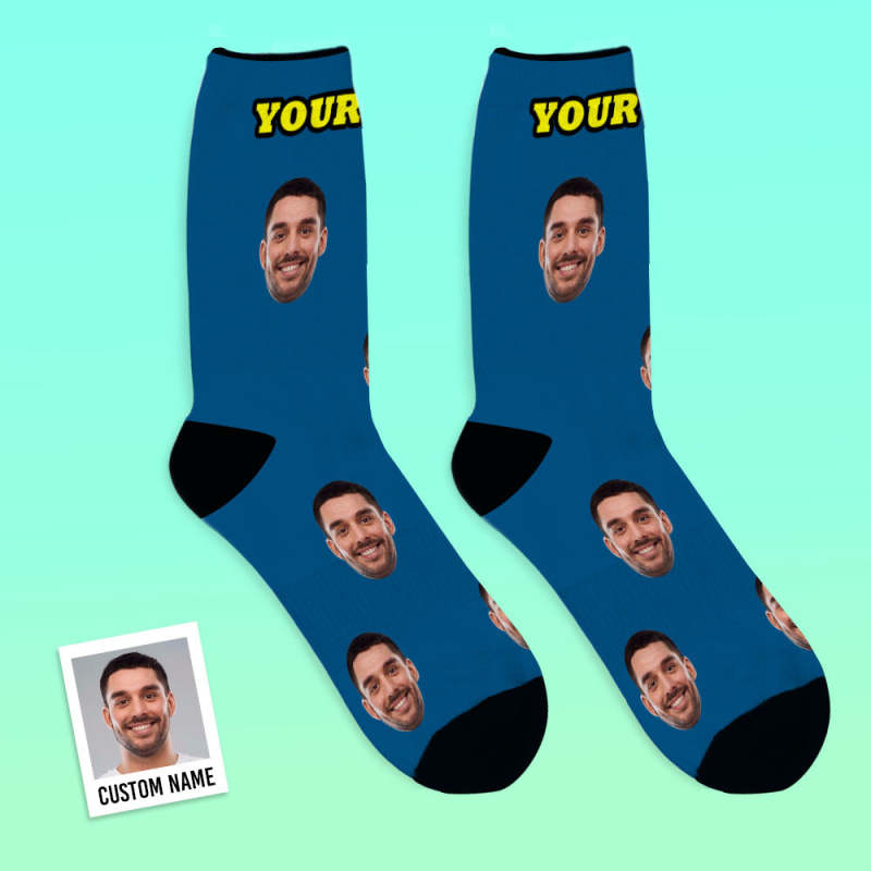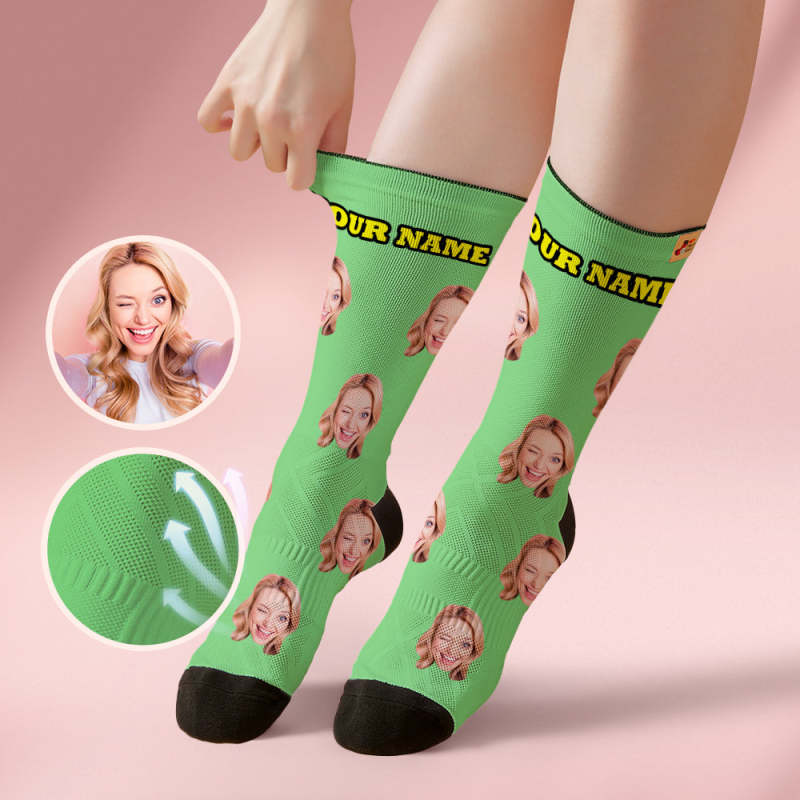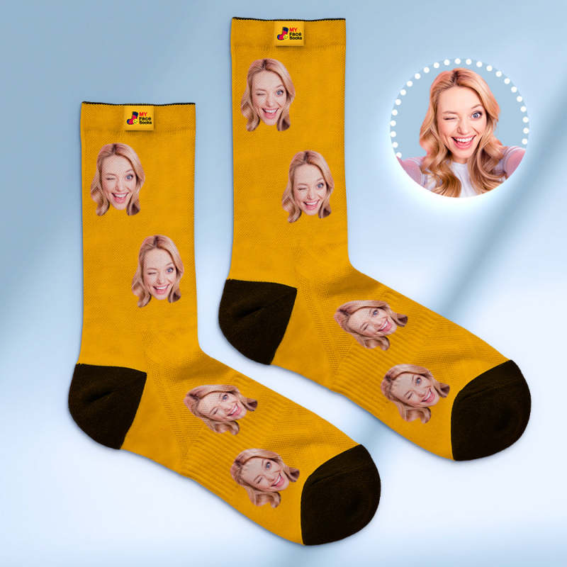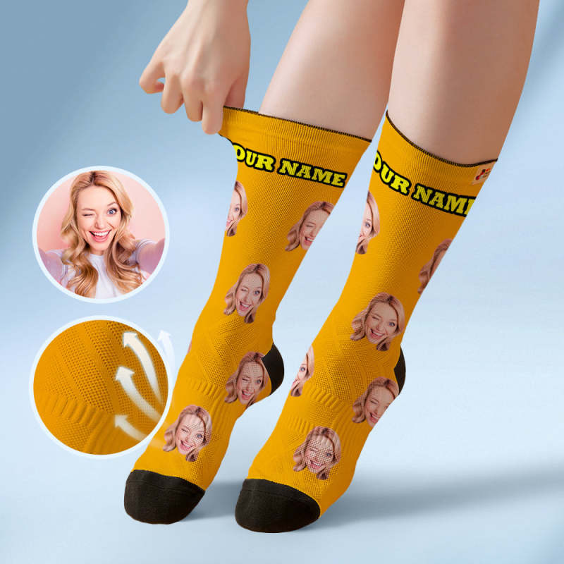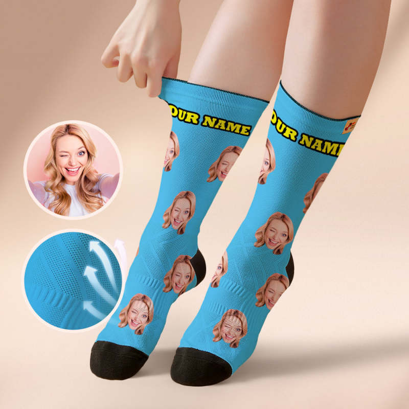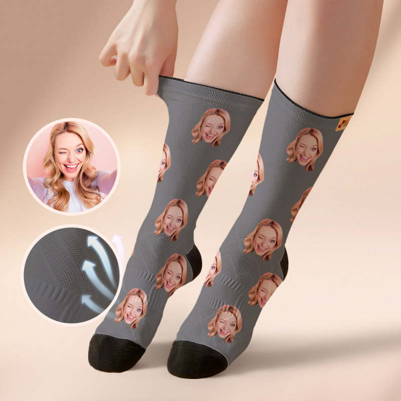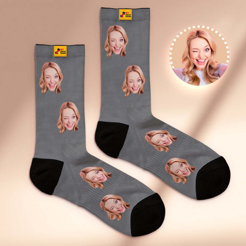 Custom Breathable Face Socks Online Preview Add Pictures And Name Colorful - Grey