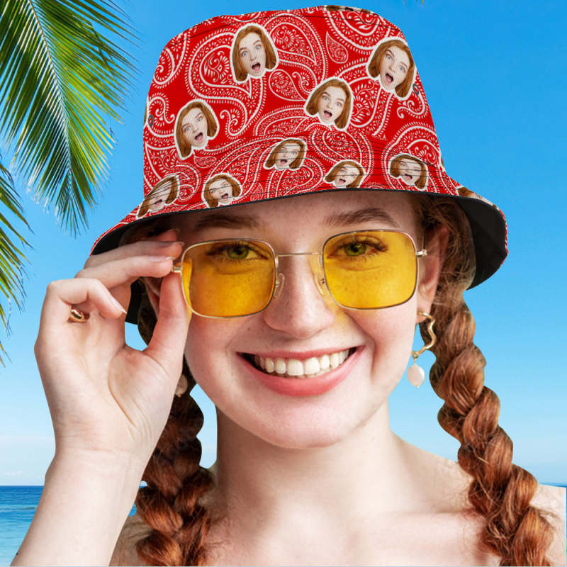 Custom Bucket Hat Unisex Face Bucket Hat Personalized Wide Brim Outdoor Summer Cap Hiking Beach Sports Hats Paisley Print