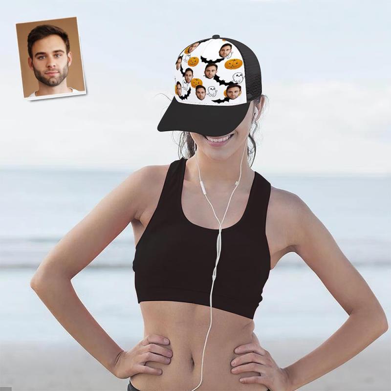 Custom Cap Personalised Face Baseball Caps Adults Unisex Printed Fashion Caps Gift - Pumpkins and Ghosts