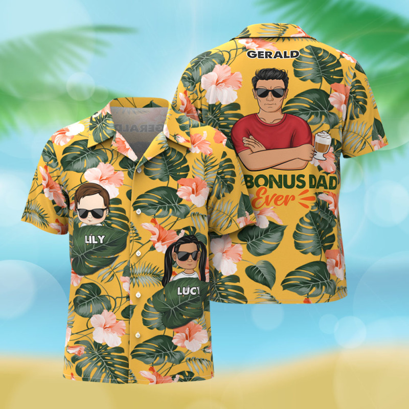 Custom Cartoon Hawaiian Shirt Best Dad Papa Ever Birthday Loving Gift For Father Grandpa Grandfather Custom Name Fathers Day Shirt Gift