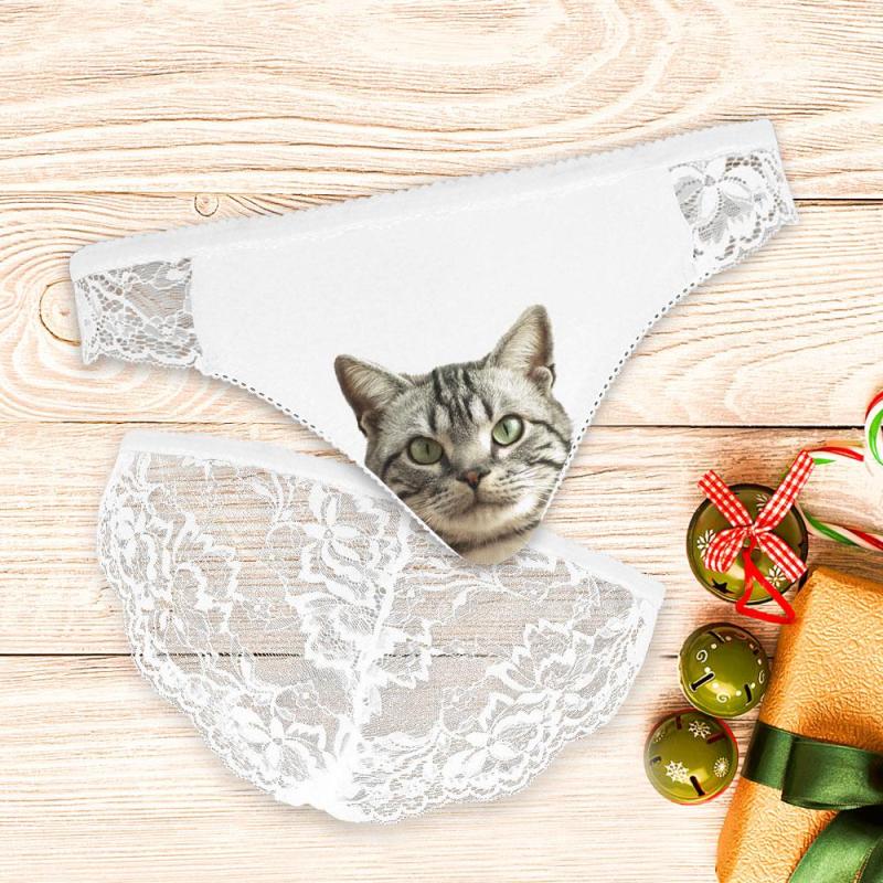 Custom Cat Face Photo Women's Lace Panties - White