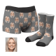 Custom Corlorful Face Boxer Shorts And Socks Set