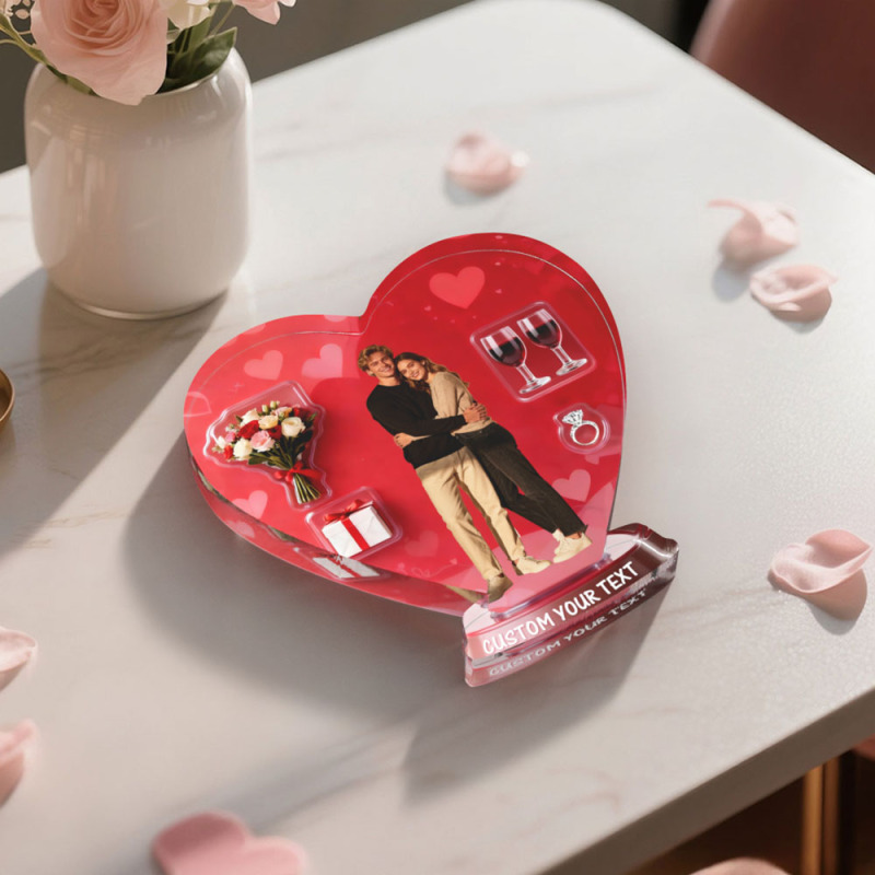 Custom Couple Photo Red Heart-shaped Ornament Personalized Photo and Text Ornament Valentine Gift