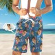 Custom Face Beach Shorts Number And Face Beach Shorts Dark Blue Sleeves And Pink Flowers