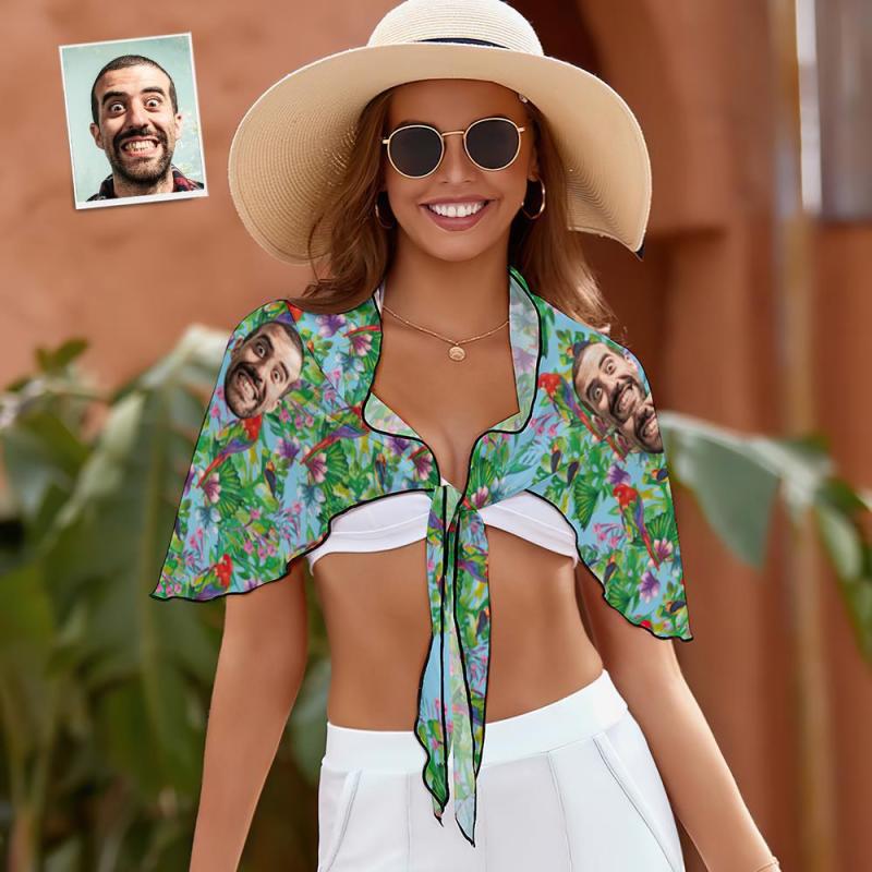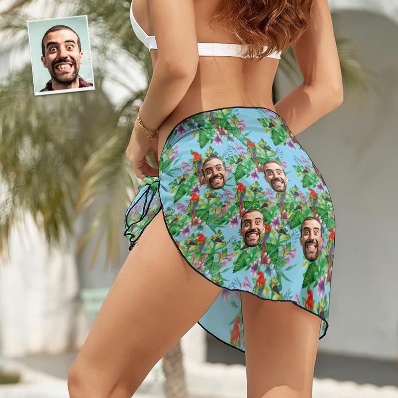 Custom Face Beach Wrap Women Short Sarongs - Parrot