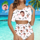 Custom Face Bikini Women's Ruffle Summer Bikini High Waisted Bathing Suits Gift For Her - Feather