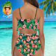 Custom Face Bikini Women's Ruffle Summer Bikini High Waisted Bathing Suits Gift For Her - Leaves & Flowers