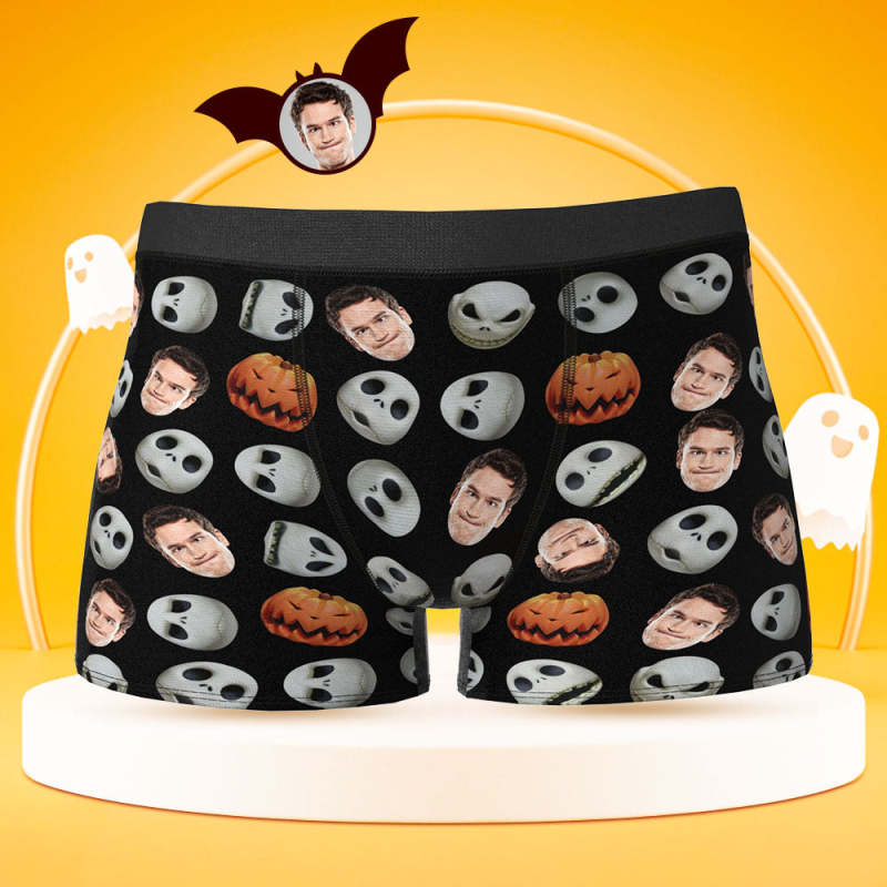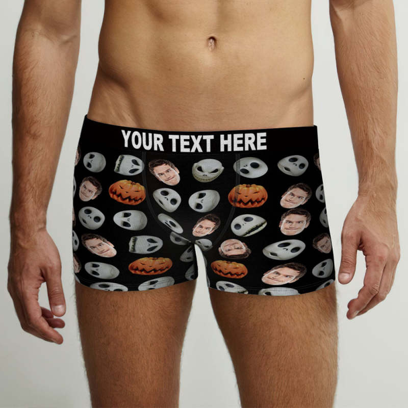 Custom Face Boxer Briefs Personalised Pumpkin Men's Boxer Shorts Halloween Gift