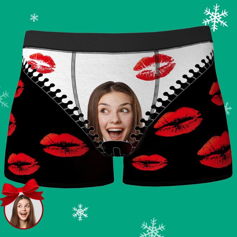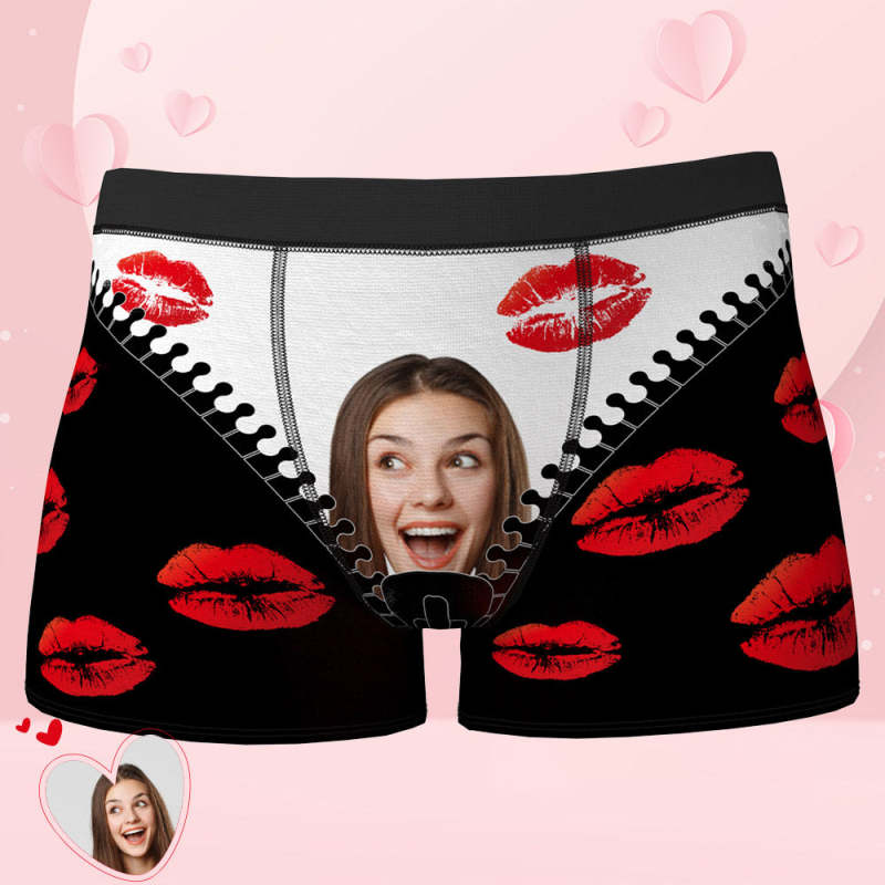 Custom Face Boxer Men's Underwear Gifts For Boyfriend - Red Lip Brief