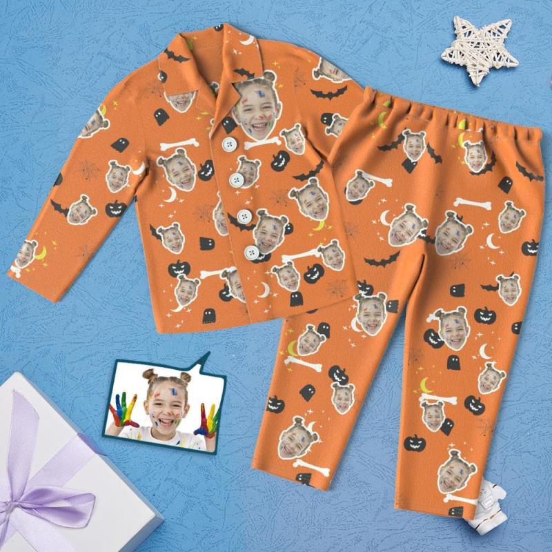 Custom Face Children's Halloween Pajamas For Kids Pumpkin Bat Print Pyjamas