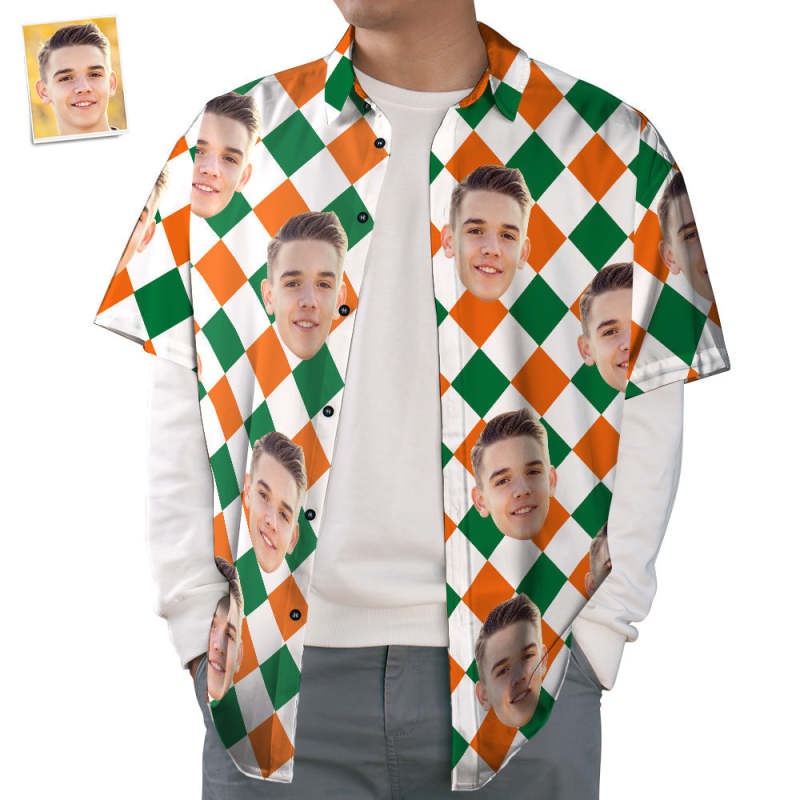 Custom Face Hawaiian Shirts, St. Patrick Checker Shirt, Gift for Adults