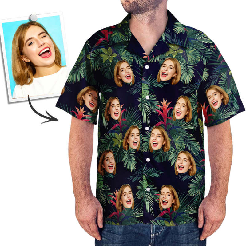 Custom Face Hawaiian Style Bromelia Long Dress And Shirt Couple Outfit