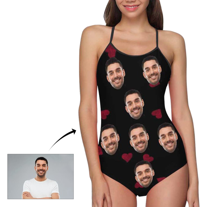 Custom Face Heart Women's Slip One Piece Swimsuit