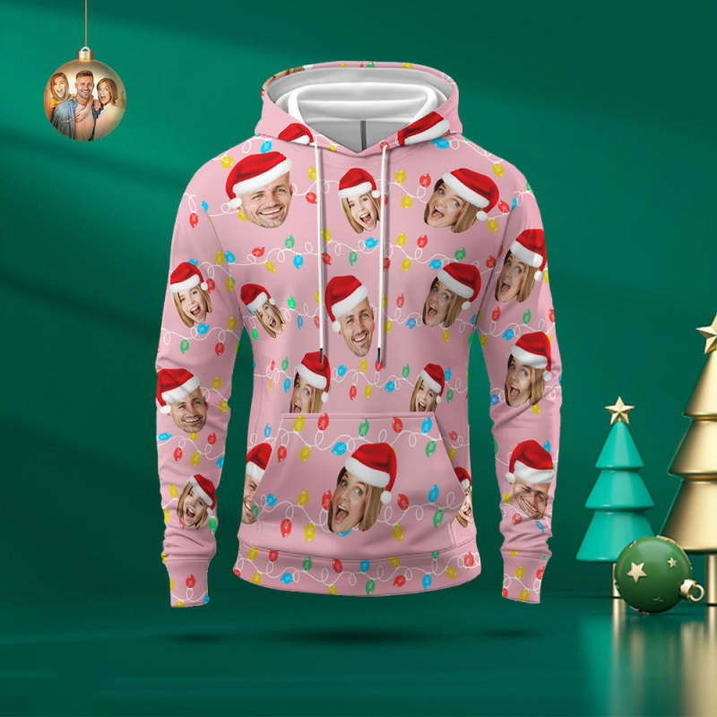 Custom Face Hoodie Personalized Photo Christmas Family Xmas Leds Unisex Hoodies