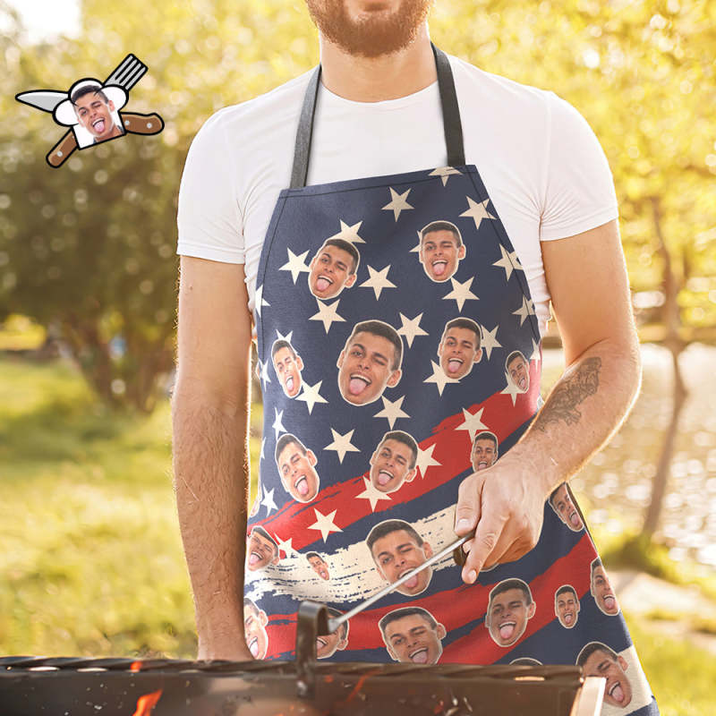 Custom Face Kitchen Apron Father's Day Gifts - Star
