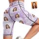 Custom Face Knee Length Tights Women's Yoga Shorts Running Leggings with Pockets - Light Purple Tie dye