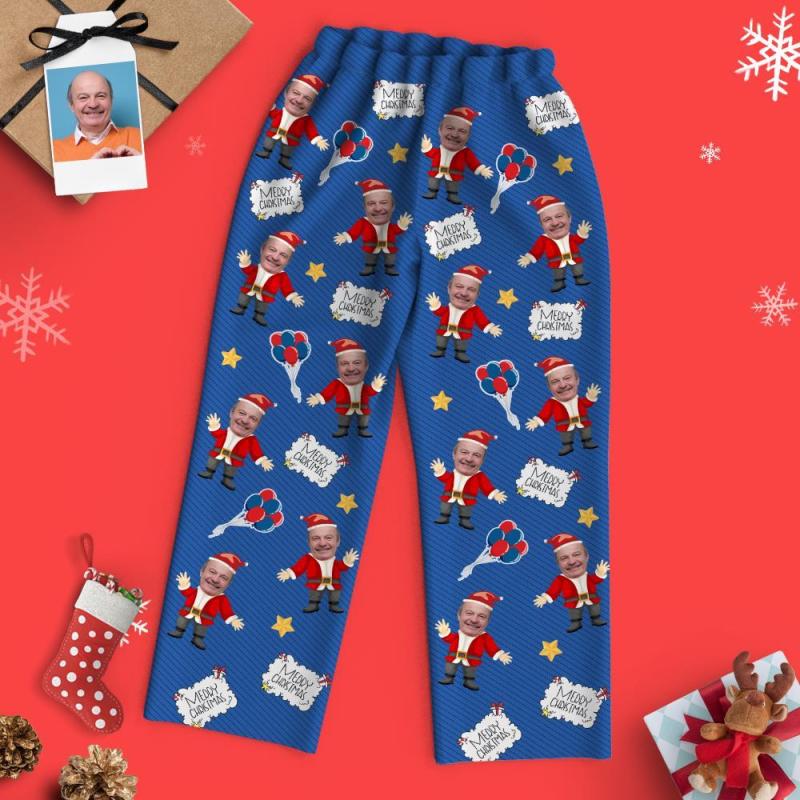 Custom Face Pajamas Family Set - Blue Santa Claus