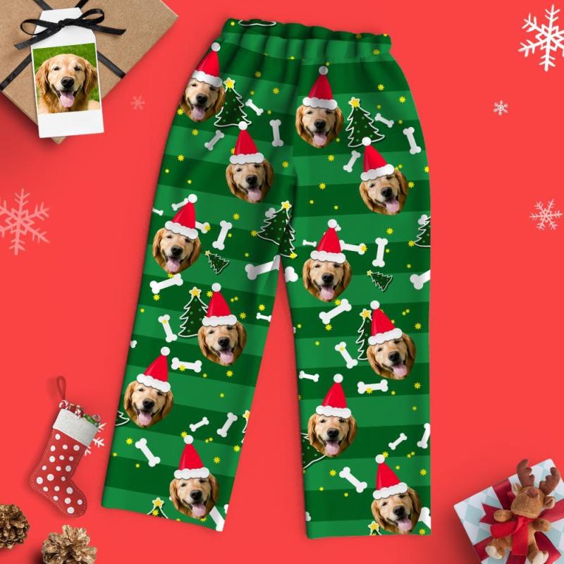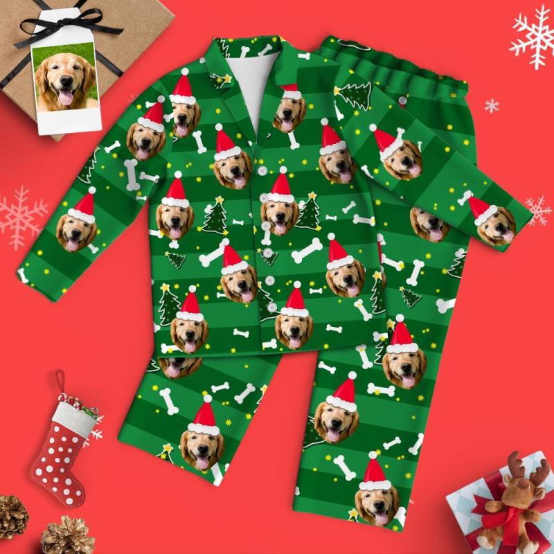 Custom Face Pajamas Family Set - Pets Wearing Christmas Hats