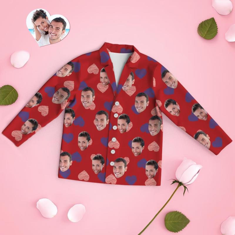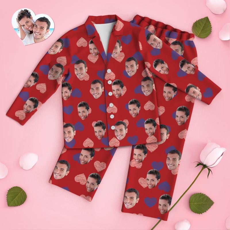 Custom Face Long Sleeve Pajamas Sleepwear Set - Stripe Hearts