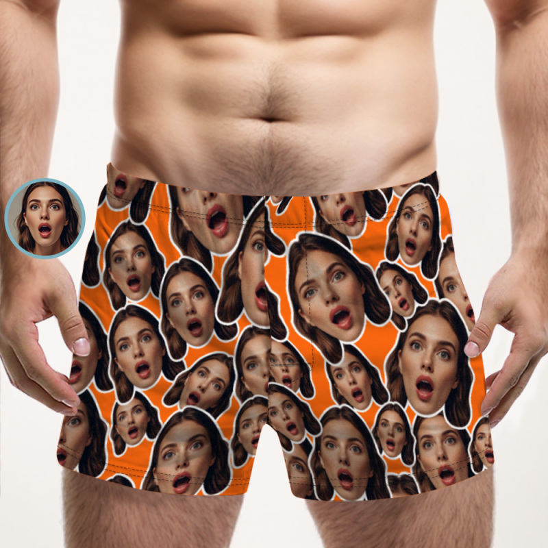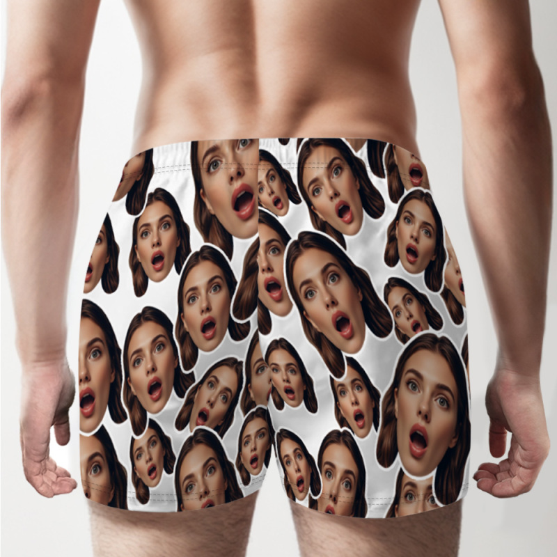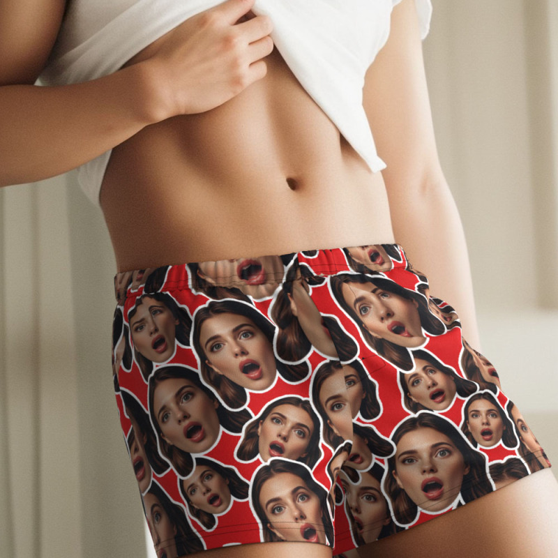 Custom Face Mash Red Boxer Shorts Personalized Waistband Casual Underwear Valentine for Him