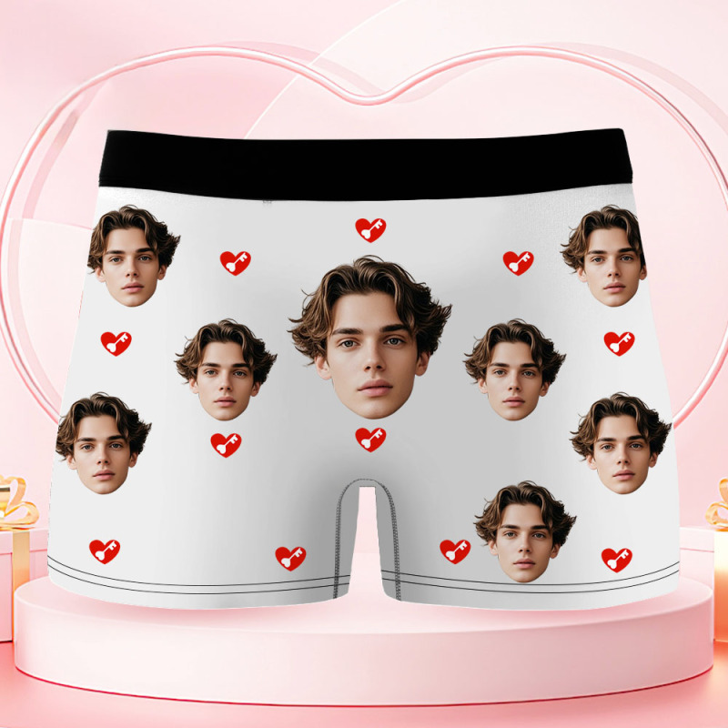 Custom Face Men's Boxer Underwear HER KEY Red Lips And Key Boxer Gift Personalized Photo Funny Men's Boxer Briefs