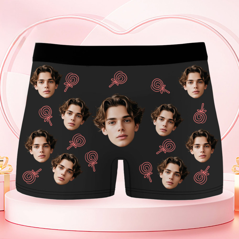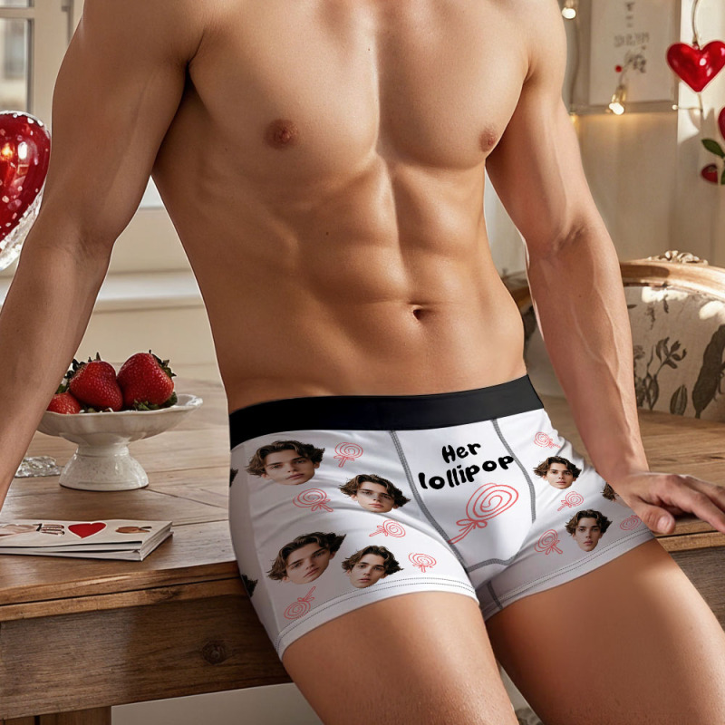 Custom Face Men's Boxer Underwear Her Lollipop Boxer Gift Personalized Photo Funny Men's Boxer Briefs