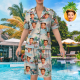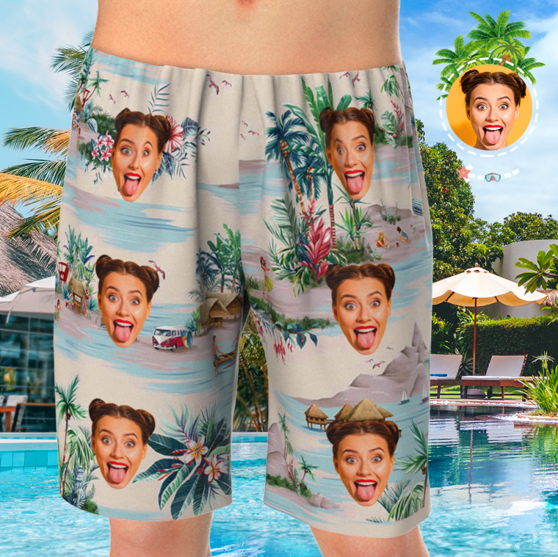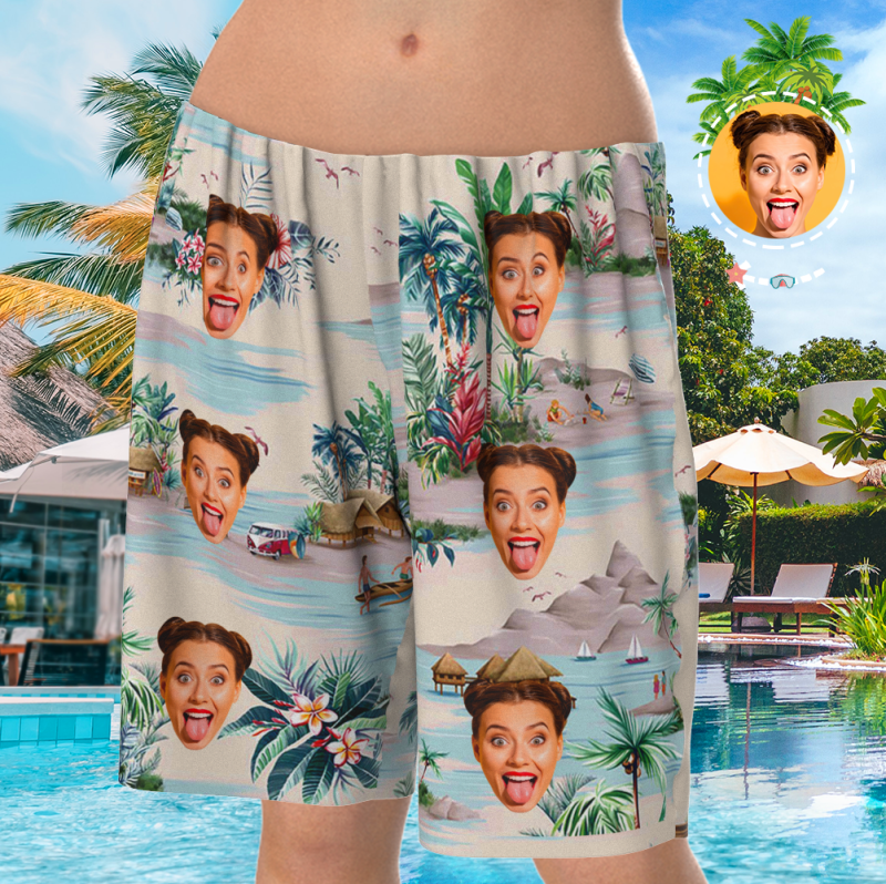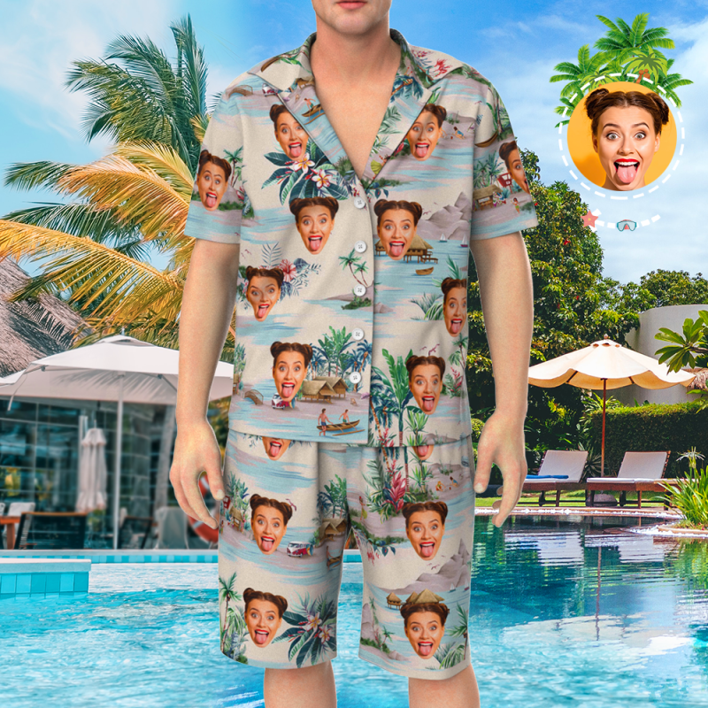 Custom Face On Pajamas Set, Short Sleeve Sleepwear, Button-Down Nightwear - Landscape Pattern