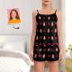 Custom Face Pajamas Suspender Sleepcoat Shorts Lingerie Set Summer Sleepwear - Heart