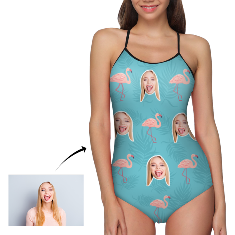 Custom face Photo and Flamingo Women's One Piece Swimsuit