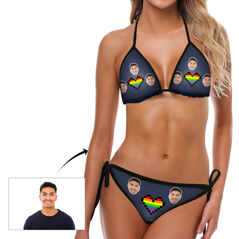 Custom face Photo Rainbow Heart Bikini Sexy Suit