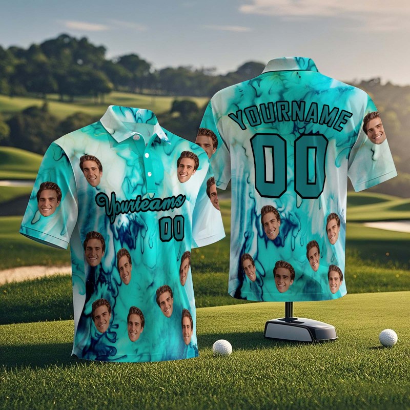 Custom Face Polo Teal Logo Hawaii Palm Trees Performance Golf Polo Shirt Gift