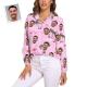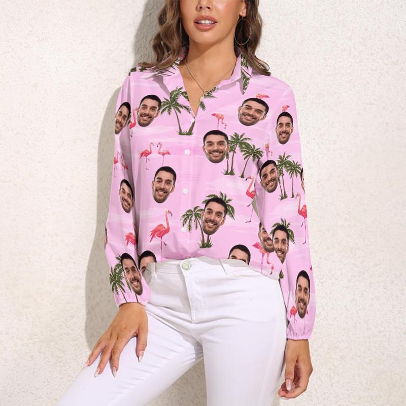 Custom Cat Face Hawaiian Shirts Pink Flamingo Vintage Long Sleeves Hawaiian Shirts for Women