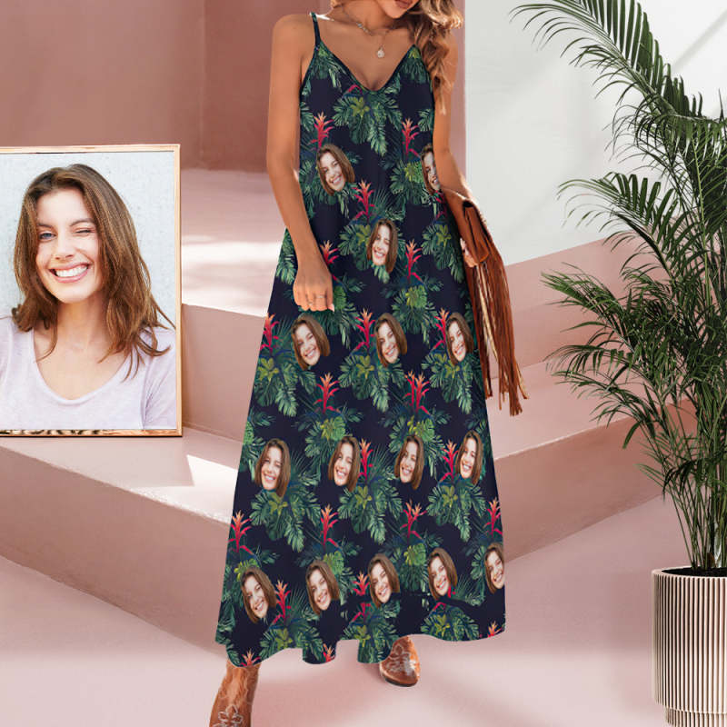 Custom Face Sling Hawaiian Style Long Dress Bromelia
