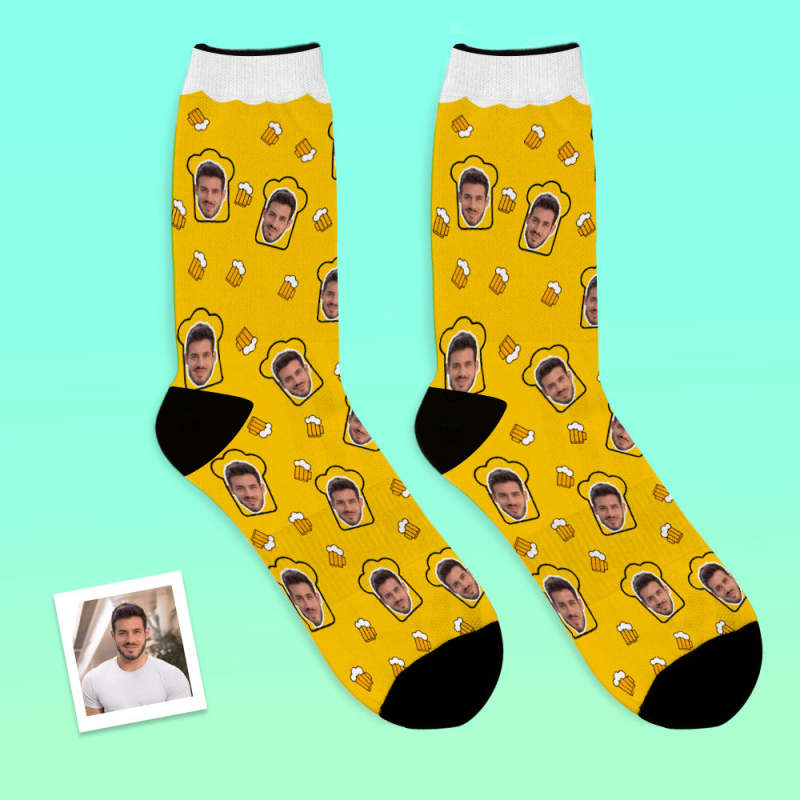 Custom Face Socks Add Pictures and Name Breathable Soft Socks Beer Drinking Father's Day Socks