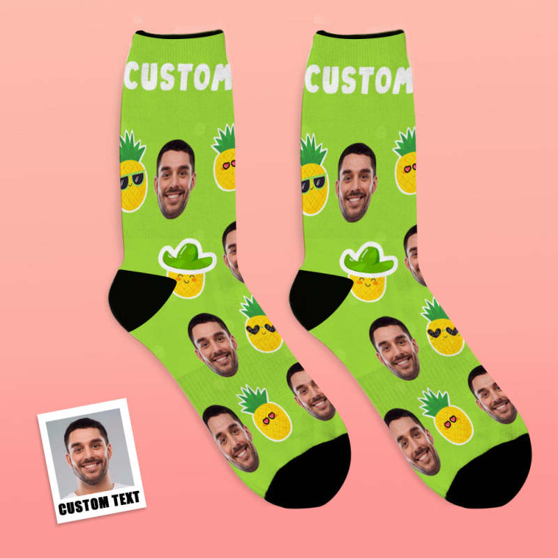 Custom Face Socks Add Pictures and Name Pineapple Funny Face Breathable Soft Socks